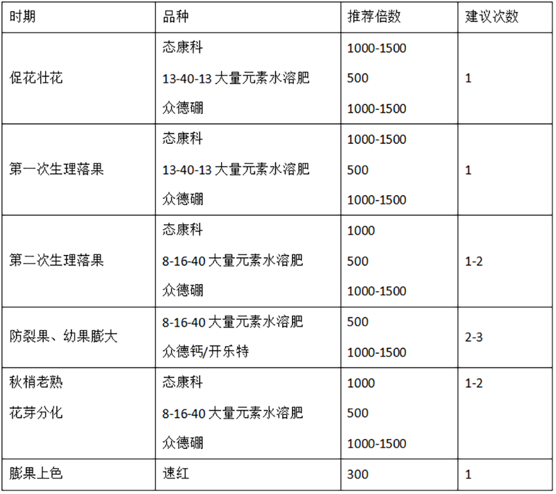 推薦方案:2%芐氨基嘌呤600倍+20%赤霉酸30000倍+眾德硼1500倍+8-16-40葉面肥500倍葉面噴施1-2次,配合抹夏梢或殺梢藥等農(nóng)事操作一并進(jìn)行。