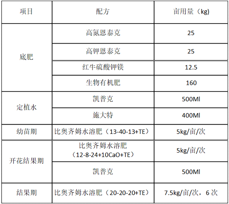定植后葉面肥:凱普克250-500倍+施大特1000倍噴施2次。